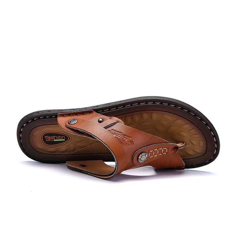Men Cowhide Daily Flat Flip-flops Outdoor Sandals