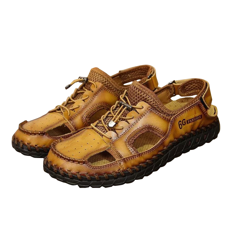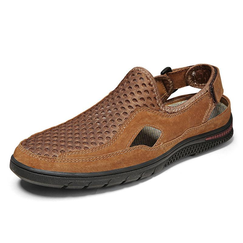 Men Genuine Hand Stitching Breathable Mesh Casual Soft Sandals