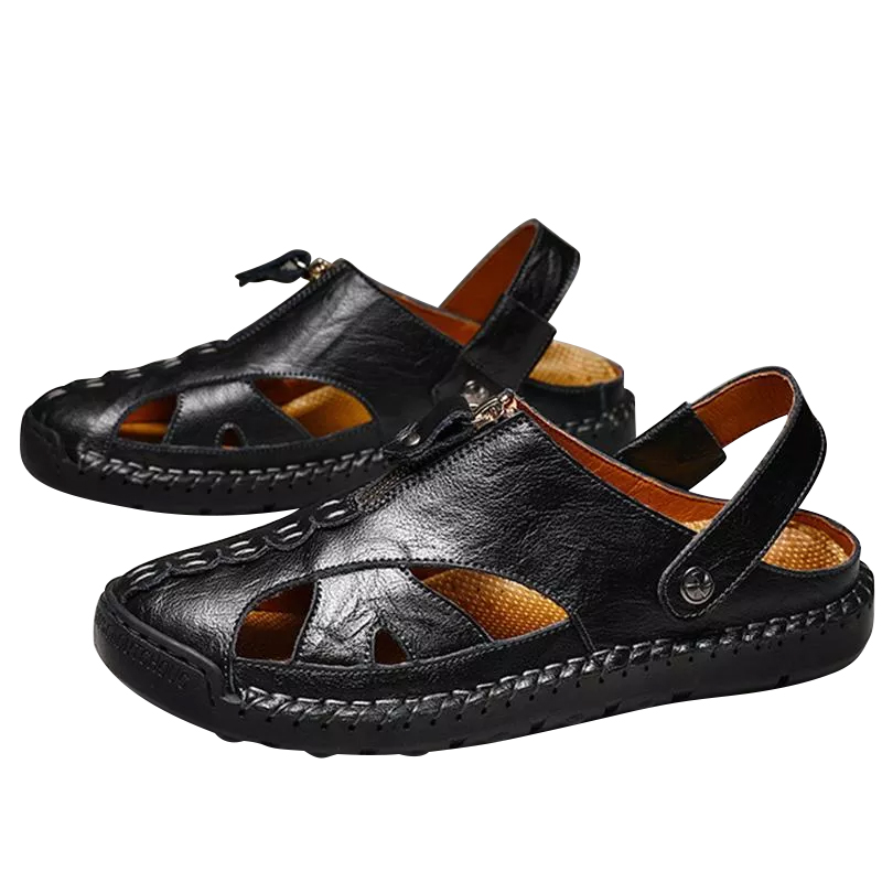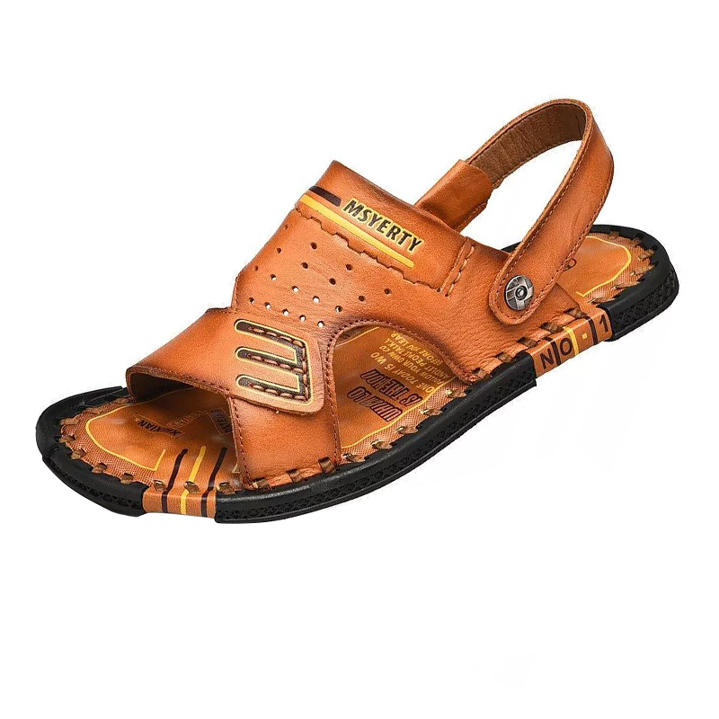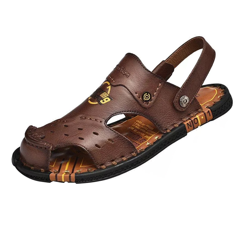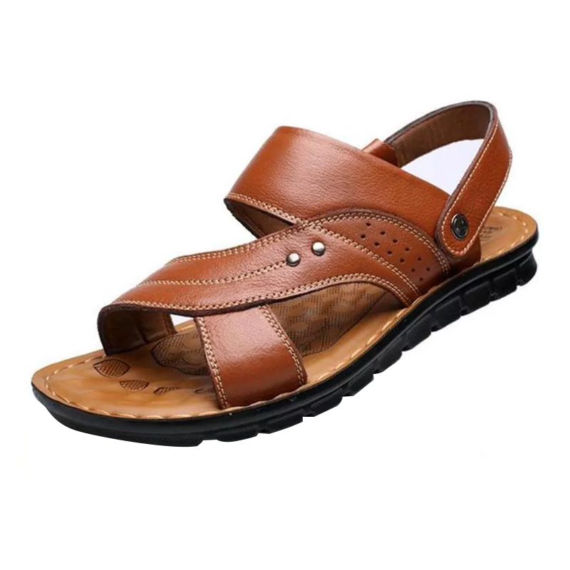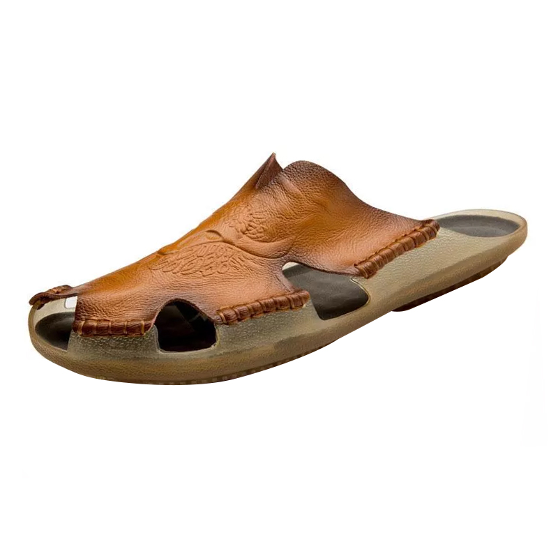 Men's Summer Genuine Sandals Comfortable Slip-on Beach Shoes