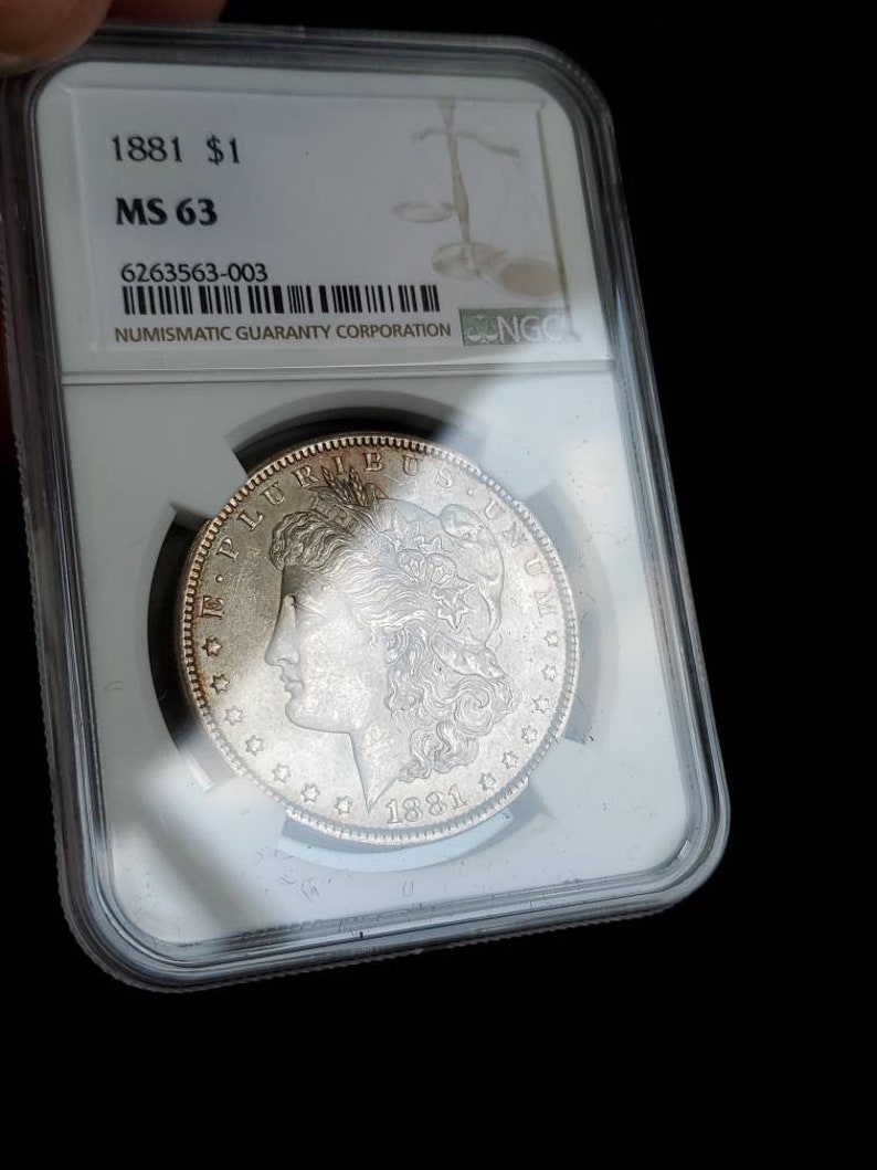 1881 MS 63 Silver Morgan Dollar, NGC MS 63 Silver Coin . Beautiful Toning ! Key date! Lot # 1479