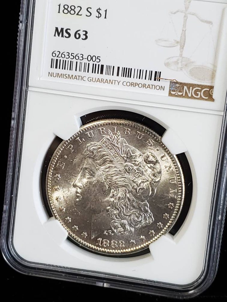 1882 S MS 63 Silver Morgan Dollar, NGC MS 63 Silver Coin . Blast White! Lot # 1485
