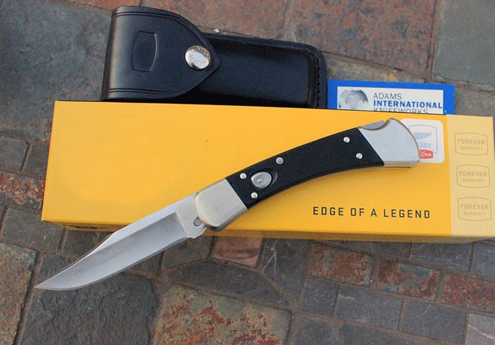 The blade of the 110 Auto Elite Knife is made of high-quality 420HC stainless steel. 420HC is standard blade material because it approaches the wear resistance of high carbon alloys while delivering the corrosion resistance of chromium stainless steels. Add exclusive heat-treat process and you have a very user-friendly combination of superior corrosion resistance with excellent strength for wear resistance and durability. You also have a blade that is easy to resharpen. For best performance Bk hardens to a Rockwell hardness of 58-60HRC.