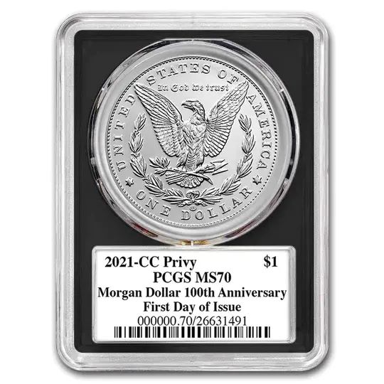 The Morgan Silver Dollar was first struck from 1878-1904 and once again in 1921. The original dollars passed through American hands during the end of the nation’s westward expansion, the start of the industrial revolution, and its ultimate rise to power on the world stage. Morgan Silver Dollars are some of the most collected coins in the world and are valued for their historic symbolism and beauty.