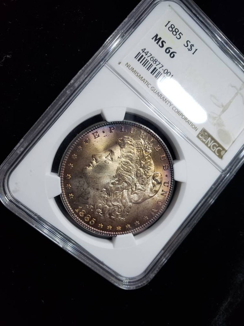 We accept Crypto - Message first before checking out! 1885 Morgan Silver Dollar MS66 NGC Graded - Beautiful color!! - Lot# 1467. This coin is Certified MS66 by NGC. Shipped with Priority. . Orders over $300 will all be shipped with Signature Confirmation and Insurance. If you would like to order multiple items on this website, please message me directly so I can send you a customized invoice at a discount.