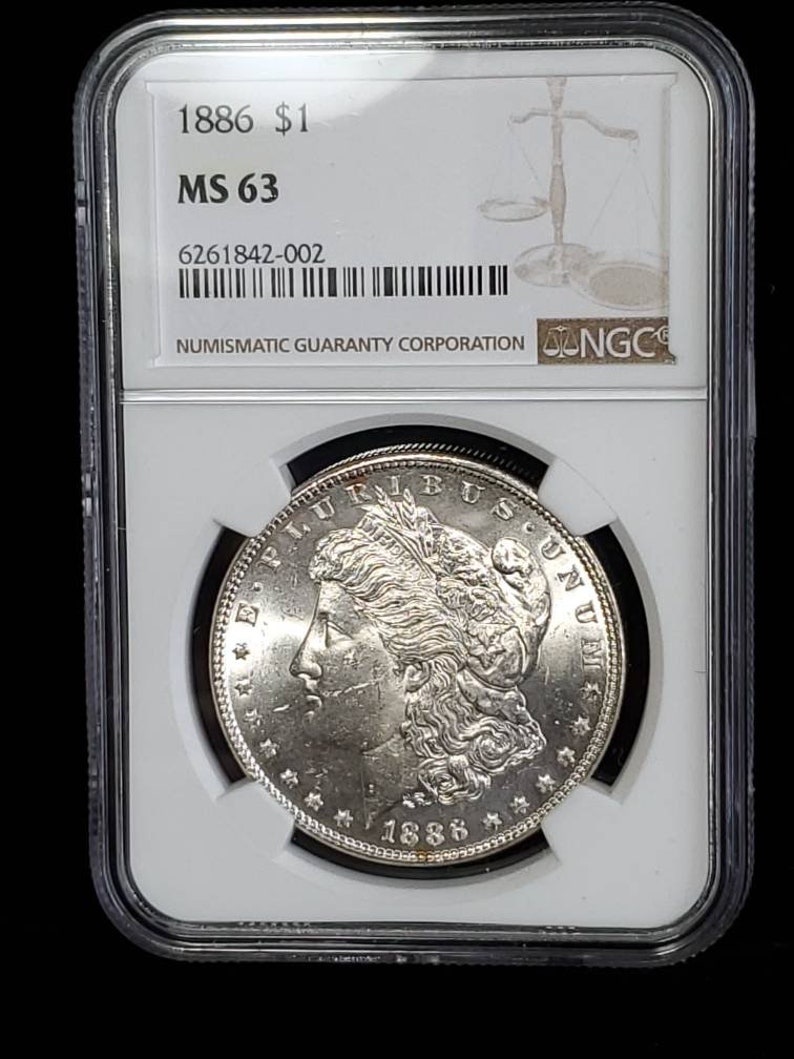 We accept Crypto - Message first before checking out! 1886 MS 63 Silver Morgan Dollar, NGC MS 63 Silver Coin . Blast White! Lot # 1491 certified by NGC and sealed in an airtight holder. The coin/ bar pictured is the exact item you will receive. Check out our reviews! Buy with confidence. Item will be shipped USPS First class insured in a secure padded bubbler envelope 1-3 Business days after receiving your order. If this will be a gift feel free to send us the message you wish displayed. . Orders over $300 will all be shipped with Signature Confirmation and Insurance. If you would like to order multiple items on this website, please message me directly so I can send you a customized invoice at a discount.
