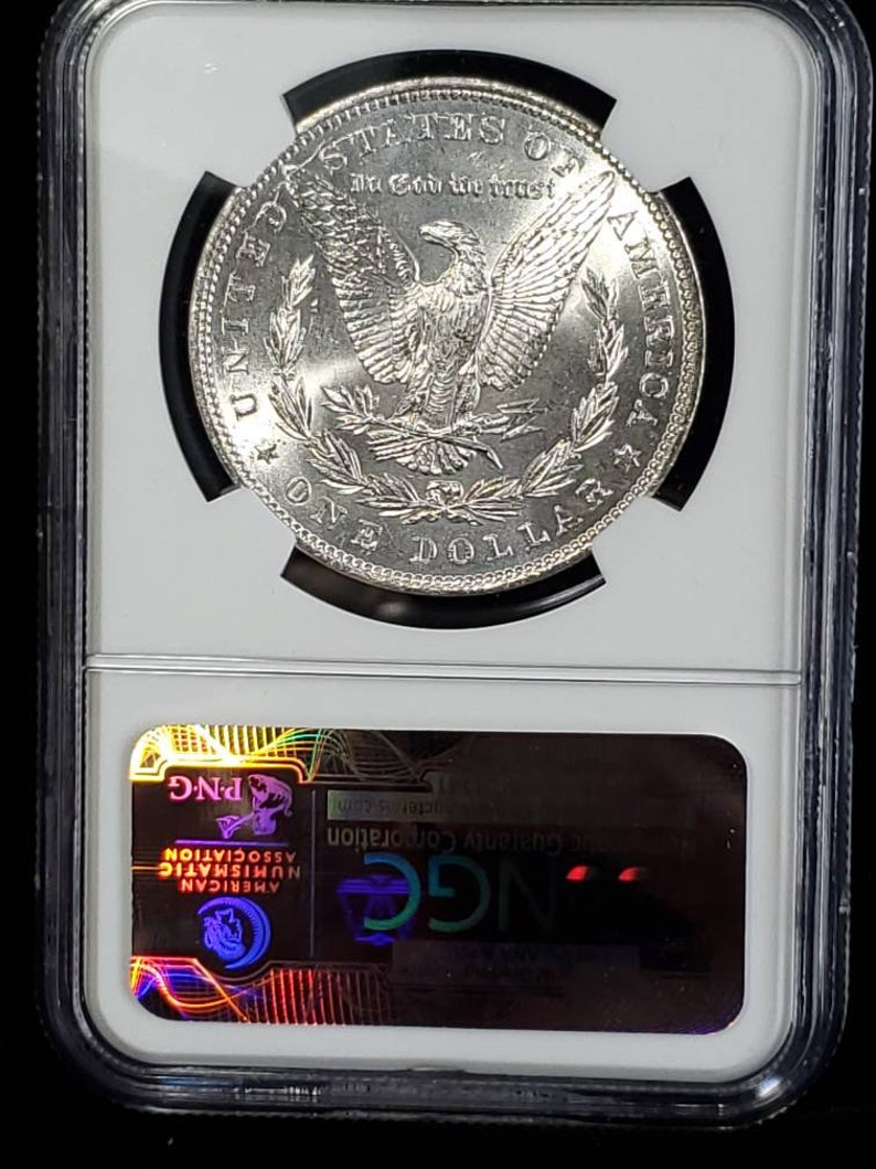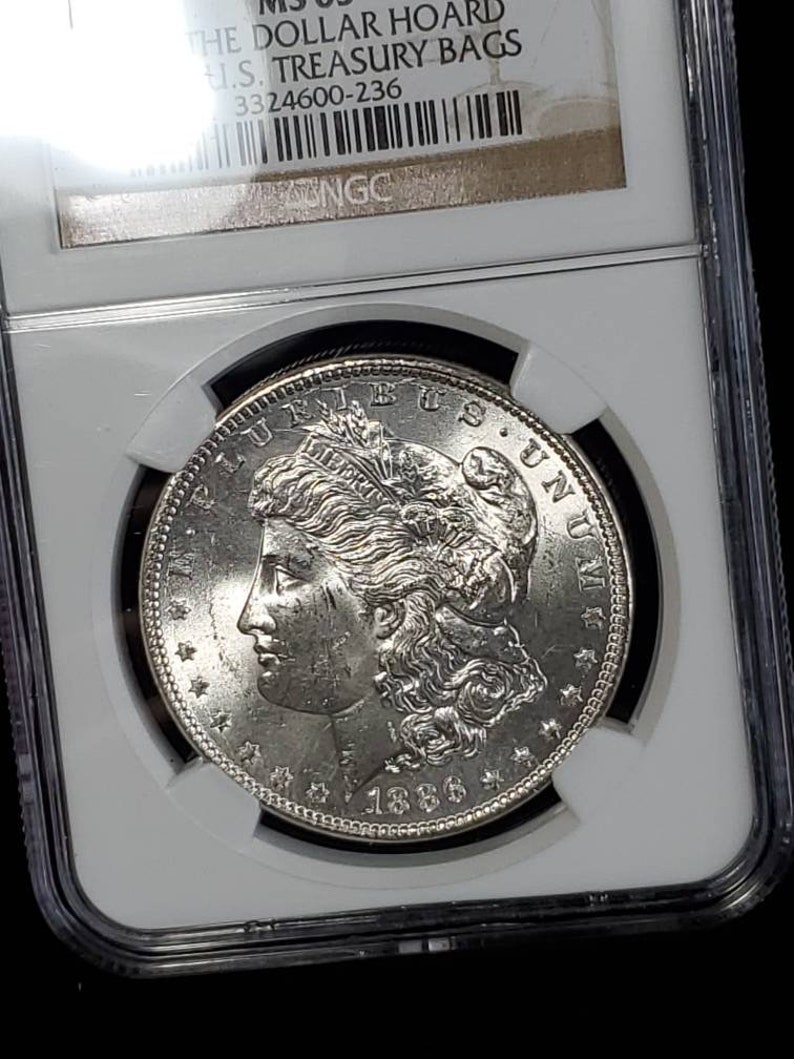 We accept Crypto - Message first before checking out! 1886 MS 63 Silver Morgan Dollar, NGC MS 63 Silver Coin . Olathe Dollar Hoard - From the U.S Treasury Bags ! Lot # 1494 certified by NGC and sealed in an airtight holder. The coin/ bar pictured is the exact item you will receive. Check out our reviews! Buy with confidence. Item will be shipped USPS First class insured in a secure padded bubbler envelope 1-3 Business days after receiving your order. If this will be a gift feel free to send us the message you wish displayed. . Orders over $300 will all be shipped with Signature Confirmation and Insurance. If you would like to order multiple items on this website, please message me directly so I can send you a customized invoice at a discount.