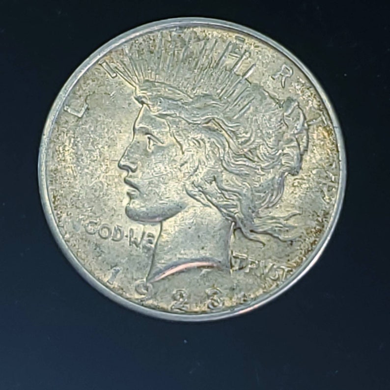 We accept Crypto - Message first before checking out! 100% Genuine 1923 S AU Silver Peace Dollar Key date 90% silver. The coin pictured is the exact coin you will receive. Lot#399. . Orders over $300 will all be shipped with Signature Confirmation and Insurance. If you would like to order multiple items on this website, please message me directly so I can send you a customized invoice at a discount. Crypto accepted! Please message me to go over your options before placing your order.