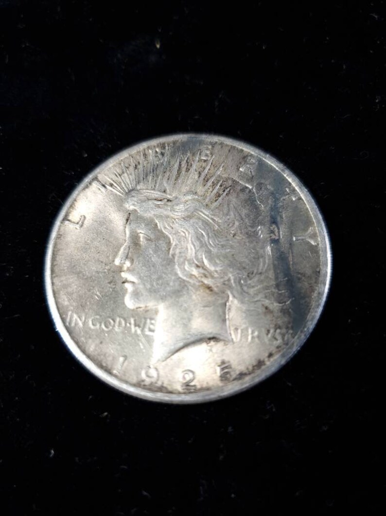 We accept Crypto - Message first before checking out! 100% Genuine 1925 BU Silver Peace Dollar 90% Silver. The coin/ bar pictured is the exact item you will receive. Check out our reviews! Buy with confidence. Item will be shipped USPS First class insured in a secure padded bubbler envelope 1-3 Business days after receiving your order. If this will be a gift feel free to send us the message you wish displayed. . Orders over $300 will all be shipped with Signature Confirmation and Insurance. If you would like to order multiple items on this website, please message me directly so I can send you a customized invoice at a discount.