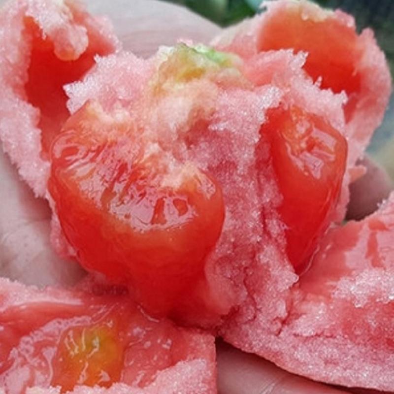 New varieties of vegetables, Indeterminate tomatoes, Strong growth potential, 6-8 fruits per string, ripe red fruit.