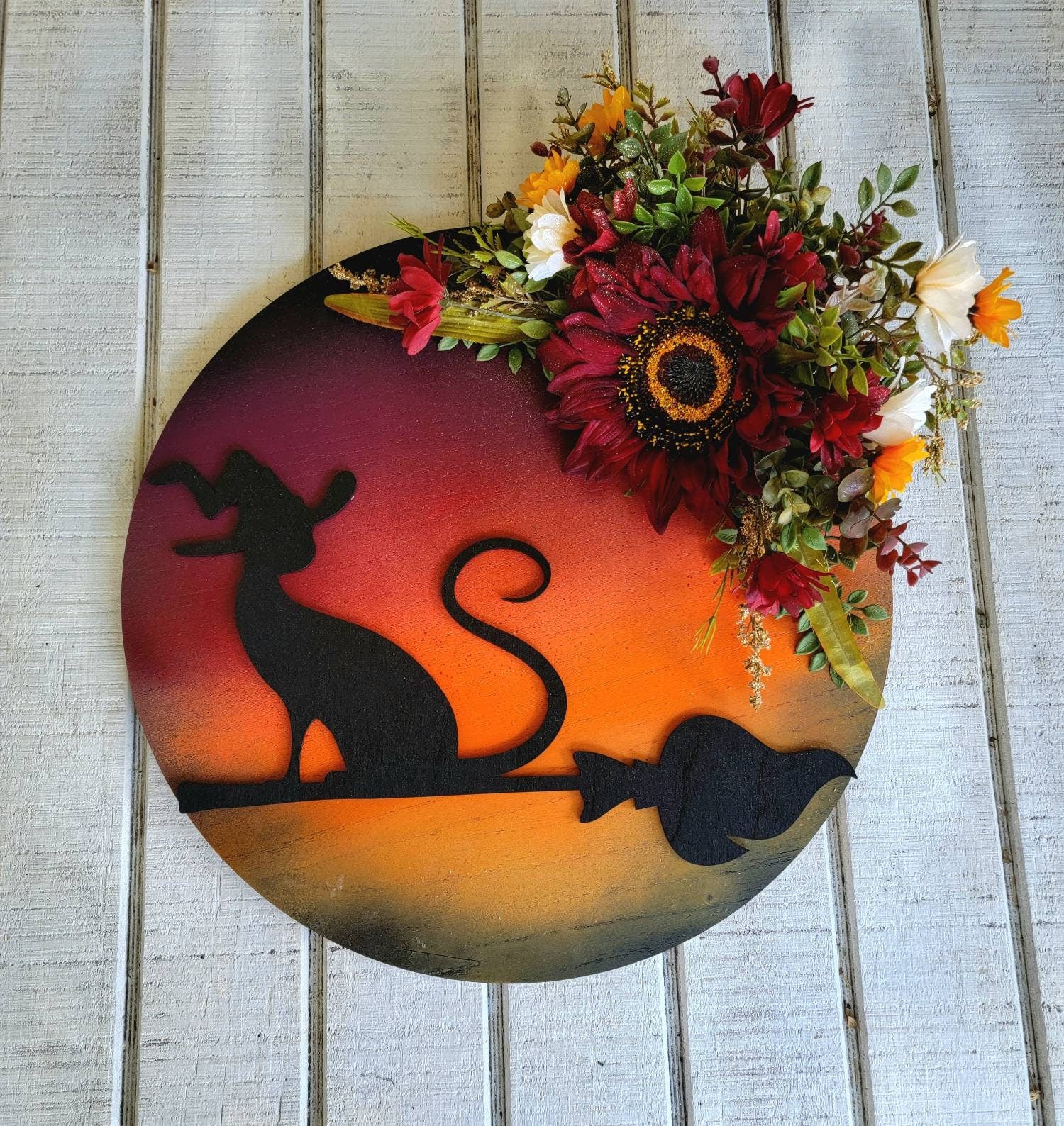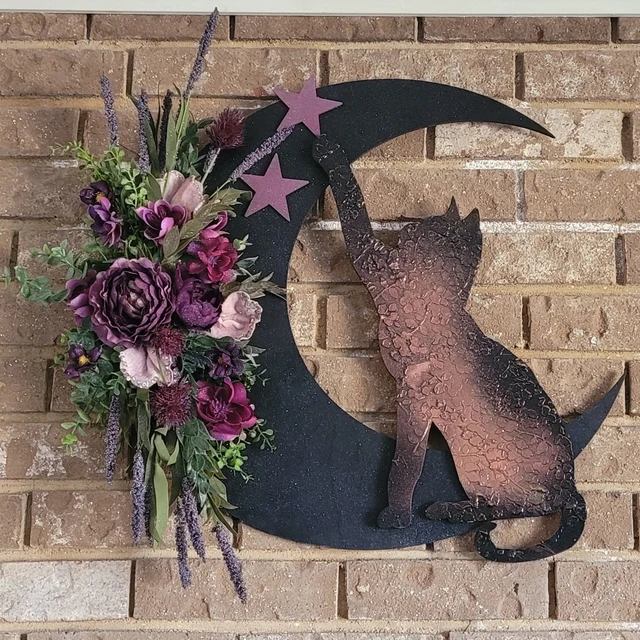 It's not enough to just wish on stars, you actually have to reach for them.💫 This LARGE patterned black and brown kitty is a statement piece that does just that! ✨️ Comes with a rope hanger on the back for a wall or door. This cat wreath makes a fabulous gift for any cat lover. All artificial for use year after year. (^..^)