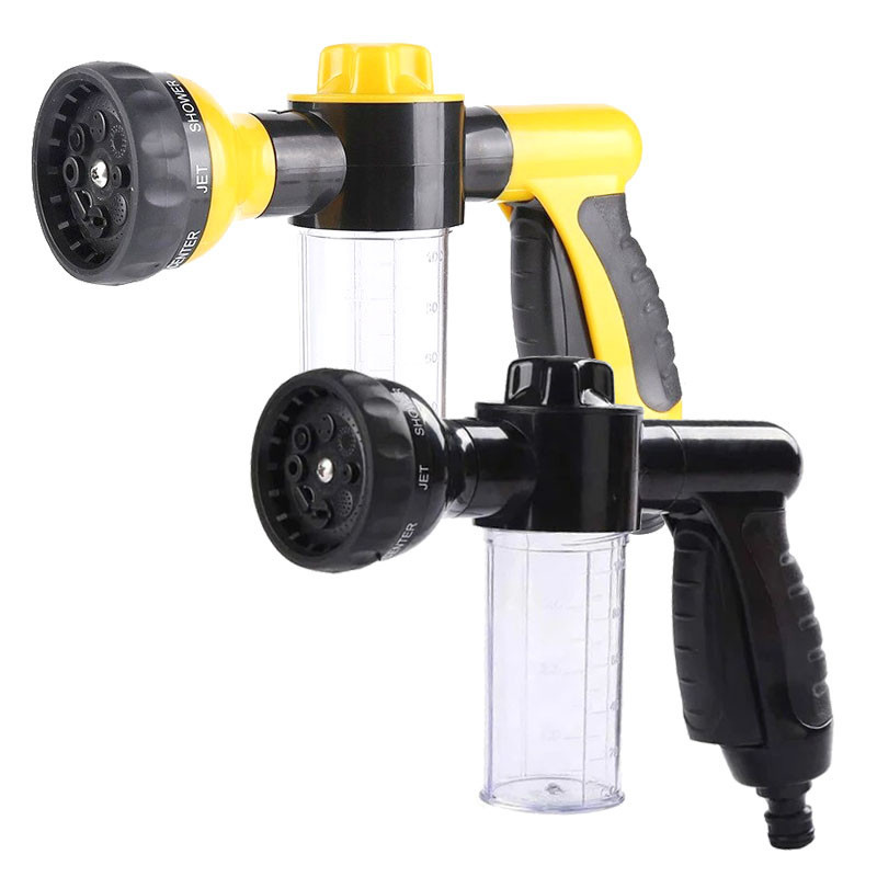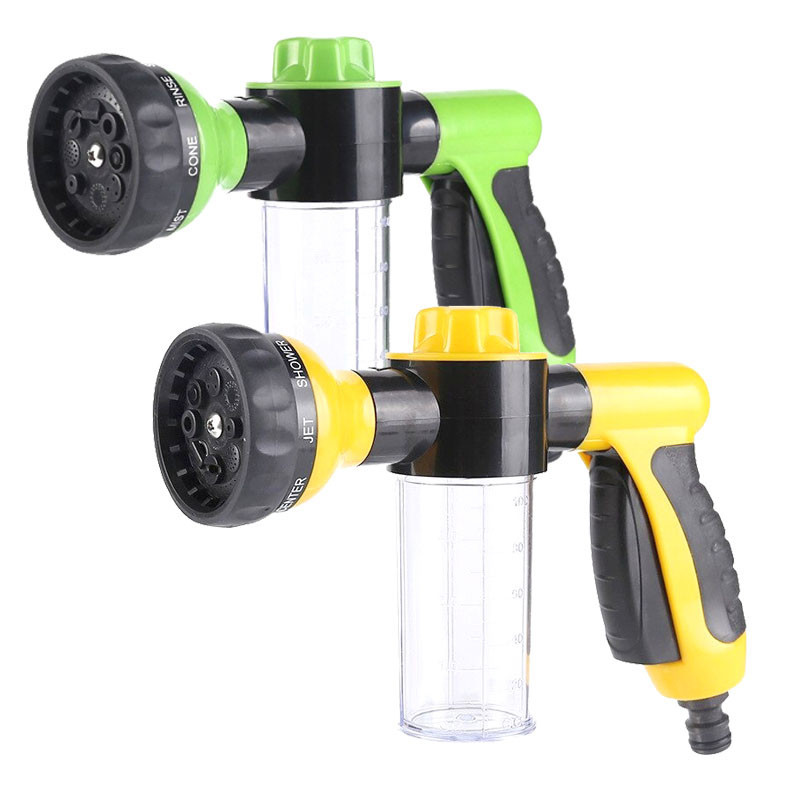 HIGH PRESSURE INDUSTRIAL DESIGNThe car wash hose nozzle has 8 spray patters and a soap dispenser. New design technology can concentrate water pressure at a point, spray distance up to 6-10 meters.