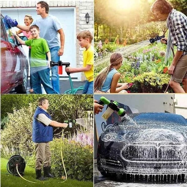 The foam gun has 8 types of spouts ,spin- click spray selector different settings ( rinse, stream, flat, center, jet, shower, mist and cone) which can spout water in 8 patterns for different uses, spray nozzle for garden hose fulfill your different needs. Best for Watering Plants, Lawn, Patio, and Washing Car, Showering Pets.