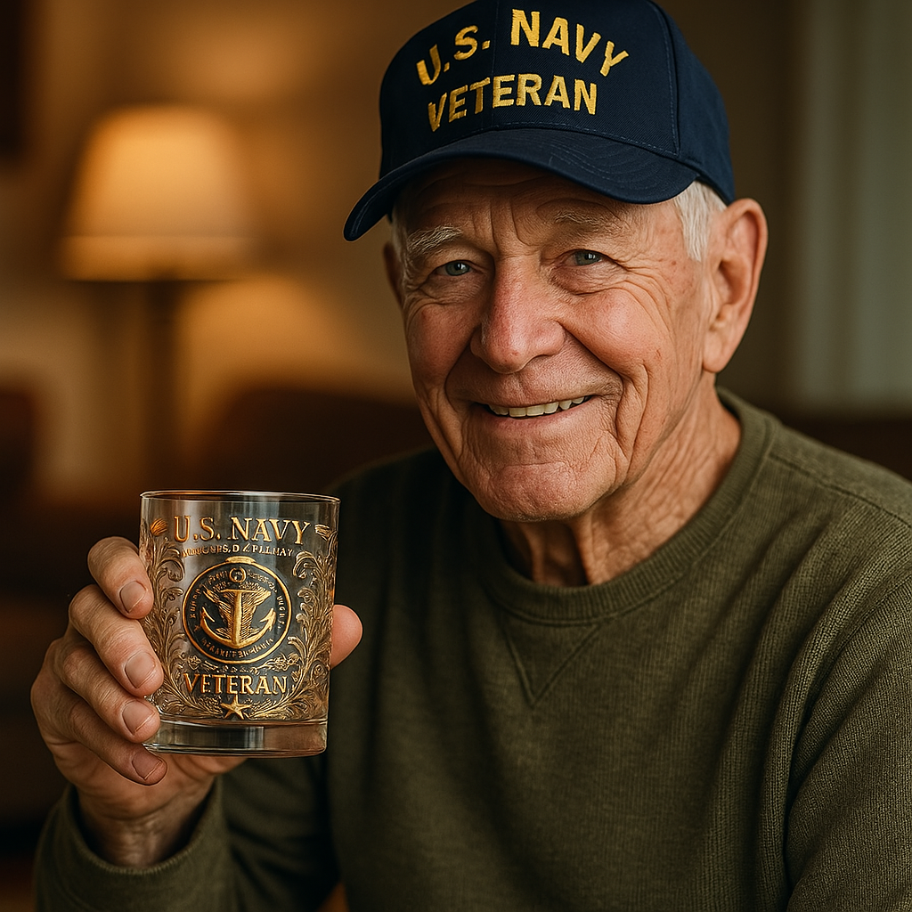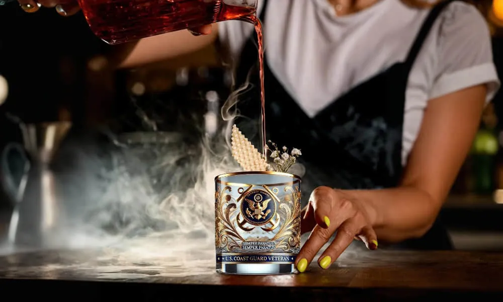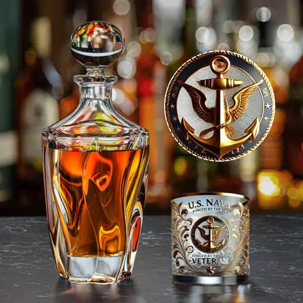 This glass is available in designs that uniquely honor the Army, Marine Corps, Navy, Air Force, and Coast Guard. The detailed engravings capture the spirit of service, ensuring that every veteran can proudly own a glass that represents their memory.