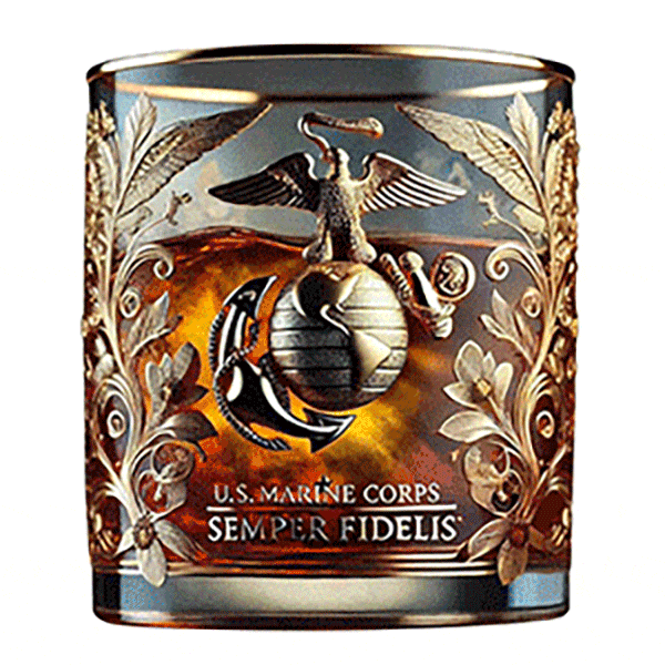 For the Few, the Proud—this glass represents the lifelong brotherhood of the U.S. Marine Corps. The Marine Corps emblem, with its eagle, globe, and anchor, is embossed with exquisite detail, symbolizing strength, service, and global presence. The bold inscription "U.S. MARINE CORPS" commands respect, while the legendary motto "SEMPER FIDELIS" (Always Faithful) stands as a testament to the loyalty and commitment that define every Marine.