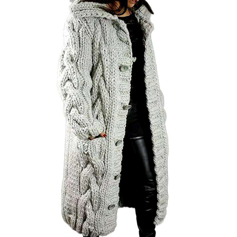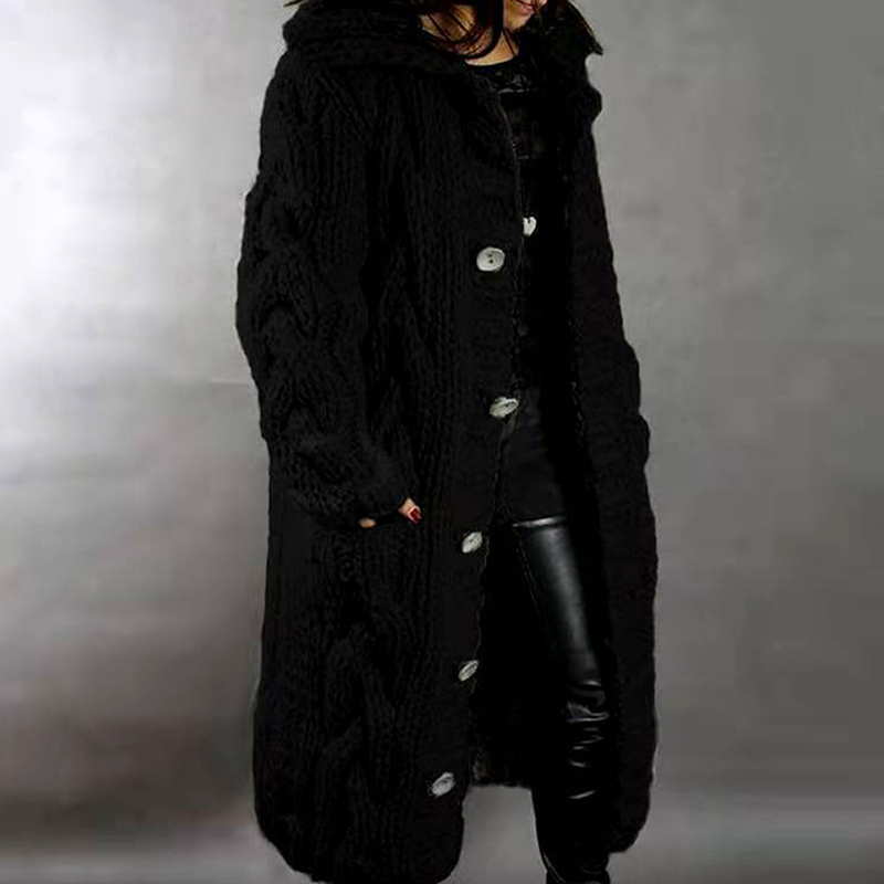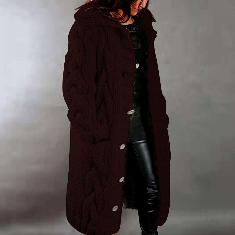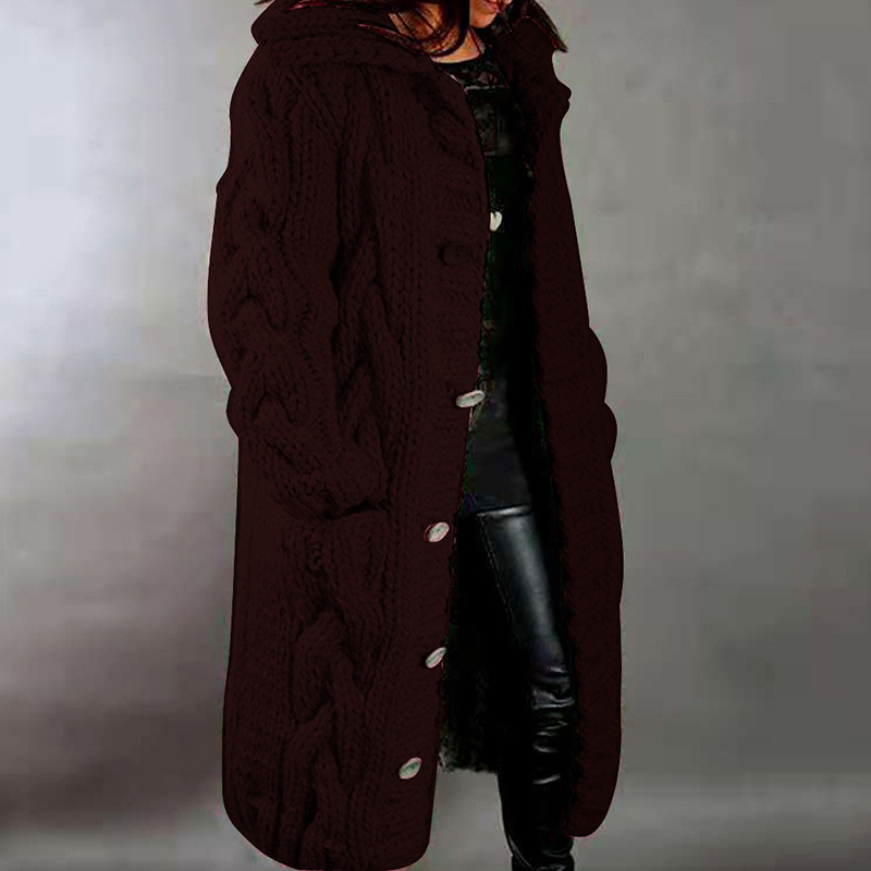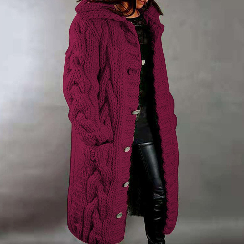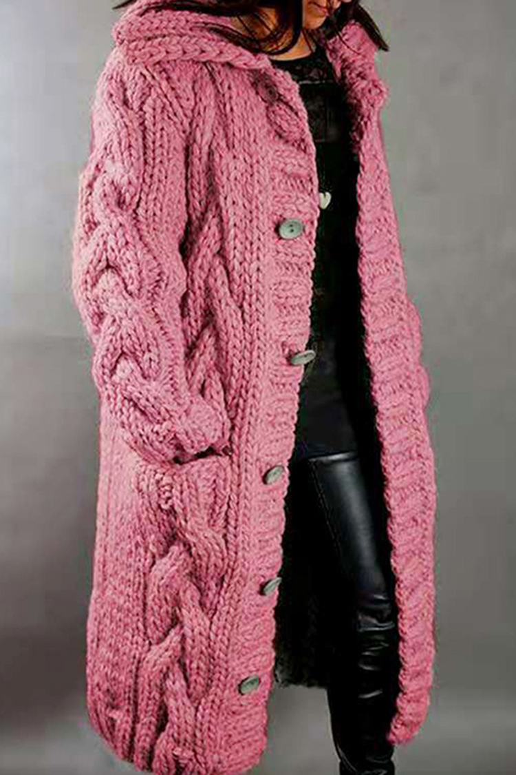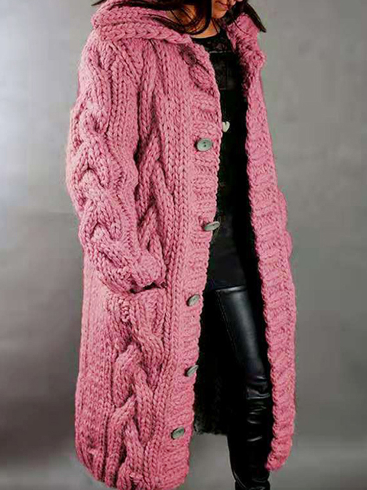 Hooded Solid Color Twist Thick Sweater Cardigan