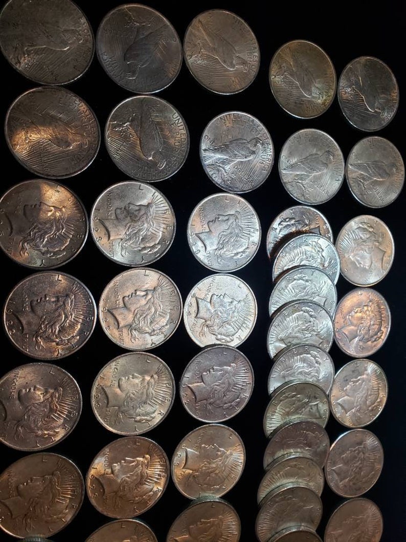 We accept Crypto - Message first before checking out! Silver Peace Dollars !! AU 1922-1926 - All 100% Genuine! Reg - 39 Lot# 736- 1 coin will be selected from this group pictured. Check out our reviews! Buy with confidence. Item will be shipped USPS First class insured in a secure padded bubbler envelope 1-3 Business days after receiving your order. If this will be a gift feel free to send us the message you wish displayed. . Orders over $300 will all be shipped with Signature Confirmation and Insurance. If you would like to order multiple items on this website, please message me directly so I can send you a customized invoice at a discount.