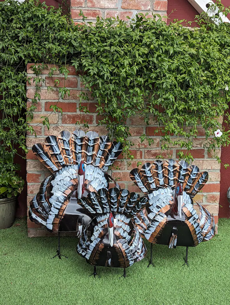 Welcome autumn with a delightful metal turkey decoration that doubles as both yard art 🌳 and a festive table centerpiece 🍽️. Handcrafted with care 🖌️, this charming gobbler adds warmth 💛, color 🎨, and fall spirit 🍁 to your garden, porch, or lawn.