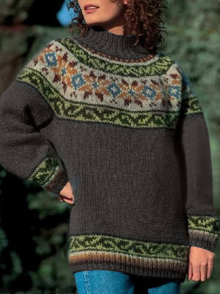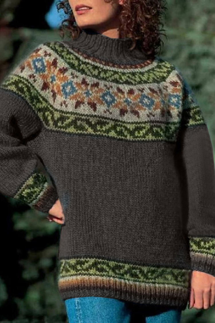 Vintage Turtleneck Long Sleeve Jacquard Sweater